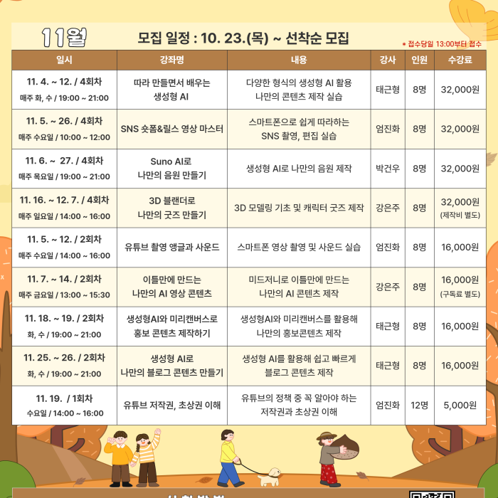 다양한 분야를 기초부터 전문가 과정까지 배울 수 있습니다.