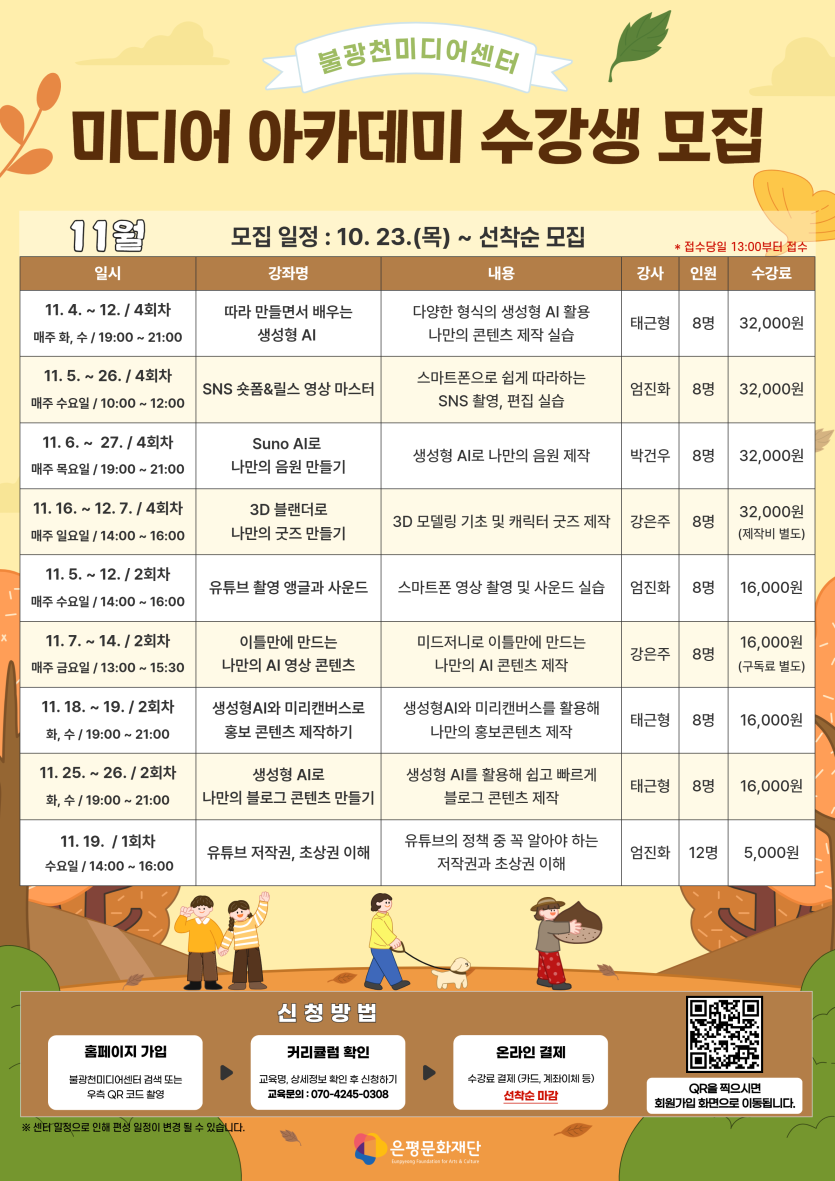 [불광천미디어센터] 11월 미디어 아카데미 수강생 모집!